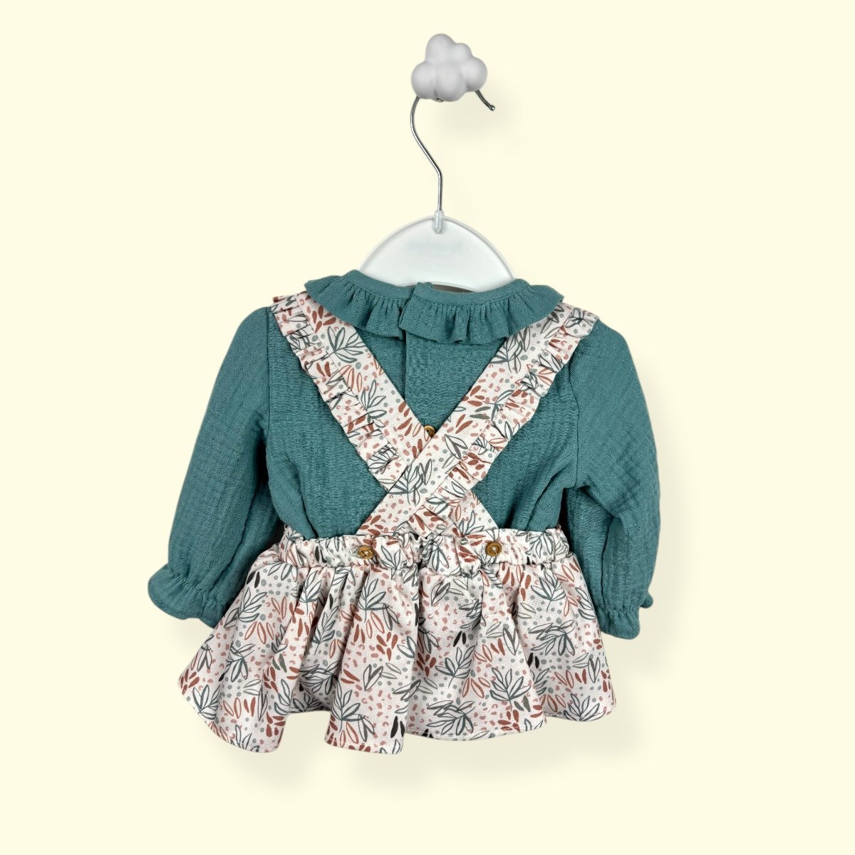 • Diseño atemporal: Tirantes cruzados en la espalda que garantizan que la prenda se mantenga en su sitio mientras tu bebé descubre el mundo.