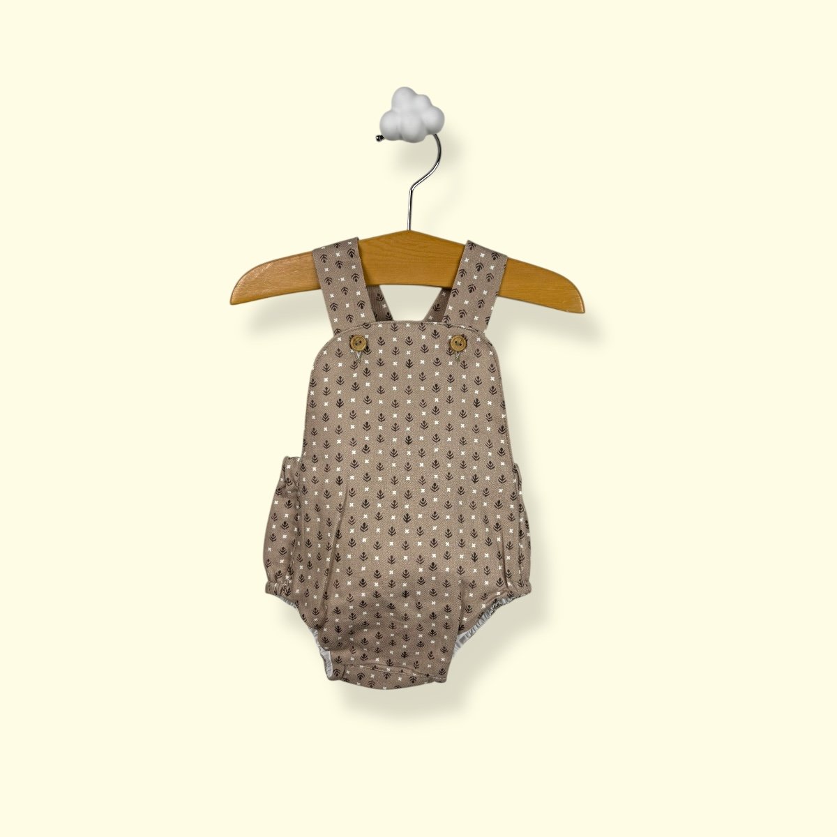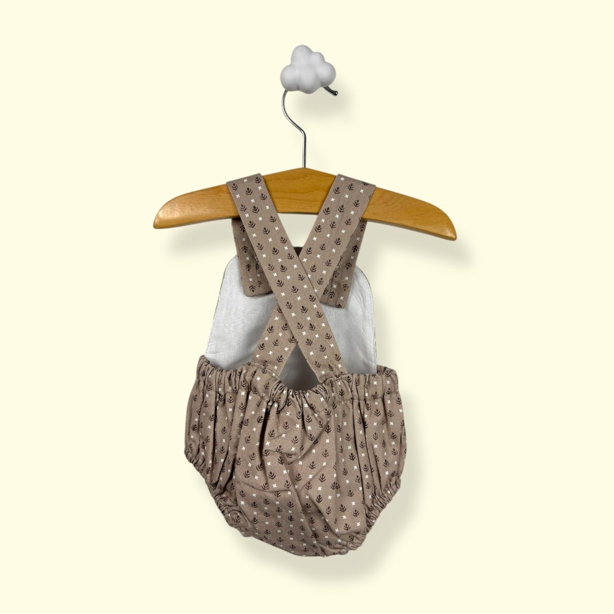 • Corte Evolutivo: Tirantes cruzados en la espalda con botones ajustables que permiten adaptar la prenda al crecimiento de tu bebé.
