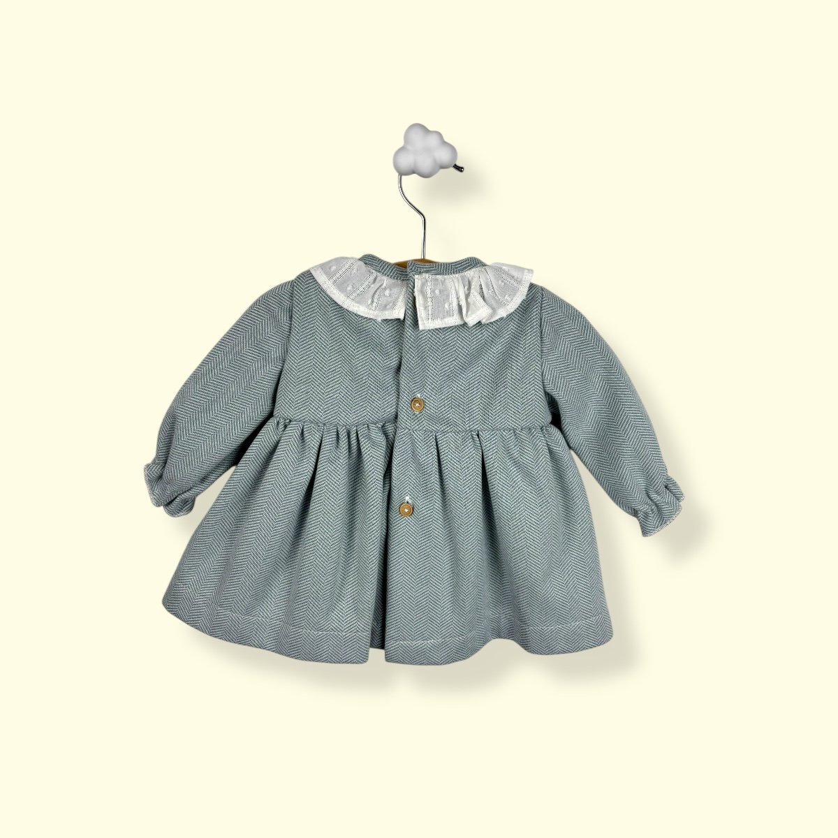 Este vestido ha sido diseñado pensando en la delicadeza de los primeros meses, combinando un tejido clásico con un patrón cómodo y favorecedor.