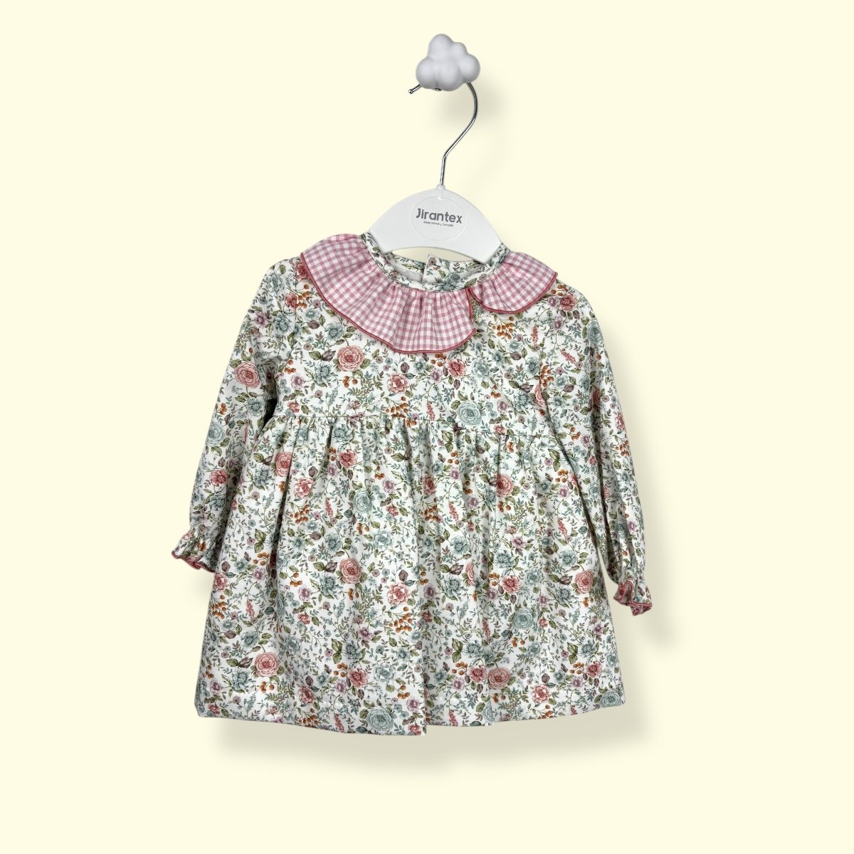 Este vestido ha sido diseñado pensando en la delicadeza de los primeros meses, combinando un tejido clásico con un patrón cómodo y favorecedor.