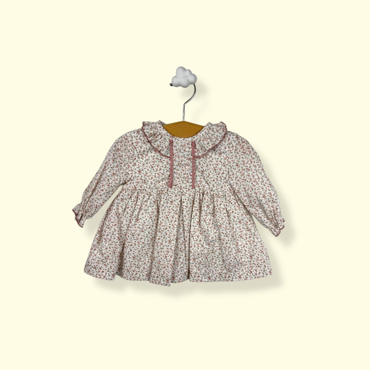 Este vestido ha sido diseñado pensando en la delicadeza de los primeros meses, combinando un tejido clásico con un patrón cómodo y favorecedor.